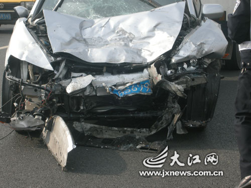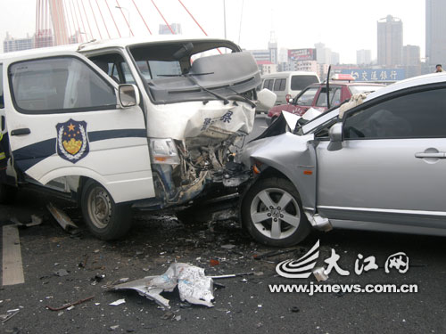 在车祸现场看到,现场散落着各种汽车零件,碎玻璃,停在大桥中段的两辆事故车前身均严重变形,损毁十分严重。事故造成八一大桥双向拥堵,车辆在桥面无法前行。一位处理事故现场的交警表示,从事故现场看来,可能是由于小车冲出双黄线而与对面车道的警车迎面相撞导致车祸,具体原因还要等现场勘查后才能知晓。