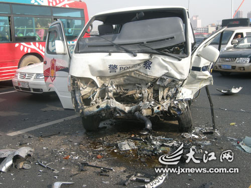 警用面包车前身也严重变形