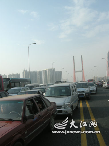 八一大桥发生车祸,来往车辆无法前行,造成整个八一大桥拥堵