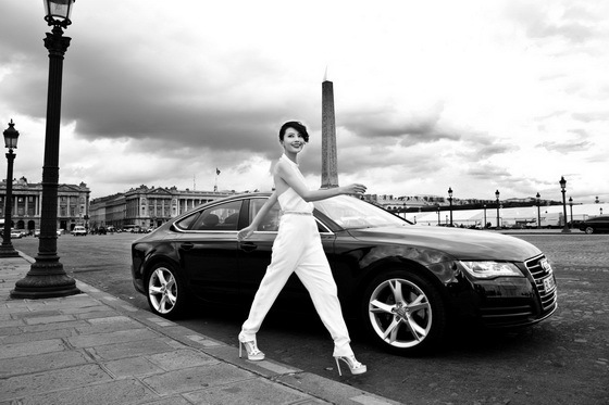 奥迪A7护航高圆圆巴黎时装周