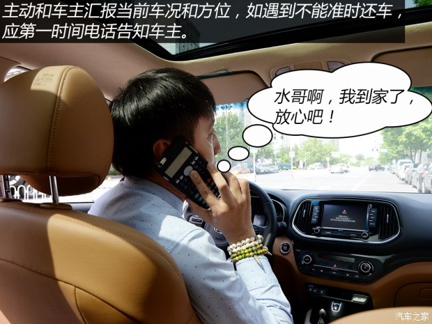 ⑦主动和车主电话沟通当前车况,如目前已经开到哪里,大约几点归还等。遇到不能及时还车的,应第一时间电话通知车主协商。