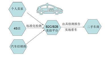 所谓B2B、C2B竞拍,是指先从个人(C)、4S店及汽车经销商(B)处获取车源,再对预拍车辆进行标准化检测,检测完毕后,将车辆信息及检测报告分发给二手车商(B),车商在PC端或手机端根据检测报告或者实地看车进行出价,最终价高者得。在盈利方式上,B2B、C2B竞拍平台的收入主要来自二手车检测、交易佣金、服务费等。