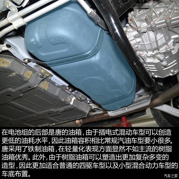 作为一款续航里程达到85km的插电式混合动力车型,唐的动力电池组体积相对较大。比亚迪的工程师将电池组布置在了底盘中部,相比将电池组布置在后备厢的做法,这样主要有两个好处:1.不会占用后备厢空间,车辆后排座椅可以正常翻折,不会牺牲SUV车型的实用性可空间扩产能力;2.SUV车型高度更高,重心也随之增高,将电池组布置在车底可以有效降低车辆重心,提升行驶稳定性。当然,硕大的一块电池组安置在乘员舱下方,相信对底盘隔音也有一定的帮助,但那并不是主要作用。