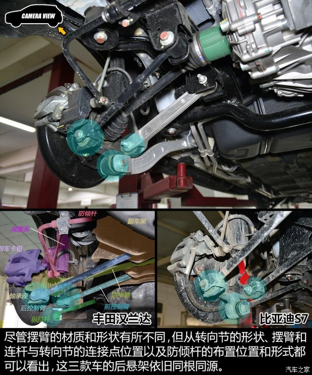 相信熟知比亚迪S6和S7车型的人们一定知道,这两款车采用的是被很多人揶揄的丰田两连杆式后悬架,其中两根横向布置的连杆体型细长,因此很多喜欢以粗细论英雄的朋友对此甚是不屑。在这方面,比亚迪唐终于做出了改变,同时我们也可以看到令其拥有越级加速能力的“神器”之一:后桥电机。
