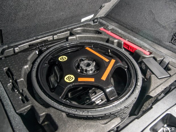 后备厢很规整,备胎藏于其中,非全尺寸规格,只适合短时间内低速行驶。