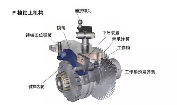 。其实P挡结构很简单,就是输出轴上有个齿轮,齿轮旁边有个钩子,当挂到P档时钩子就将齿轮勾住,从而把输出轴锁止。换句话说P挡时驱动轮是不能够转动的。