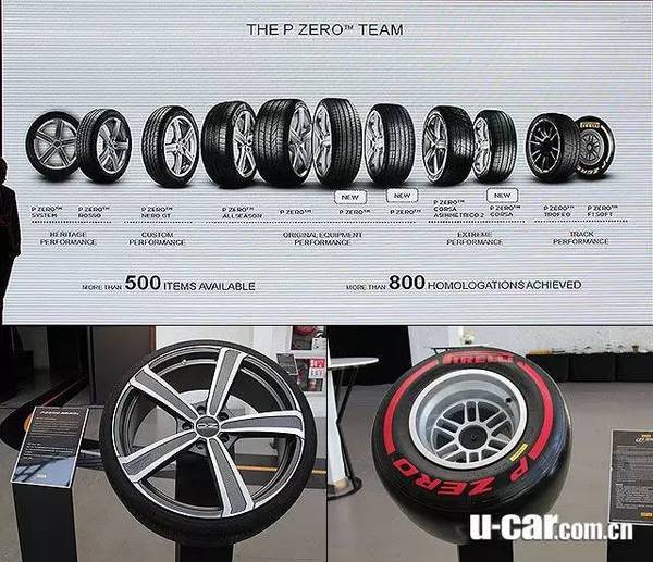 现场观看每个厂牌不同的车辆,会发现即使都搭载P ZeroCorsa或P Zero,除了轮圈规格不同外,每条胎的性能指数、花纹、认证也都不同。