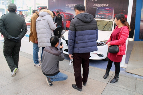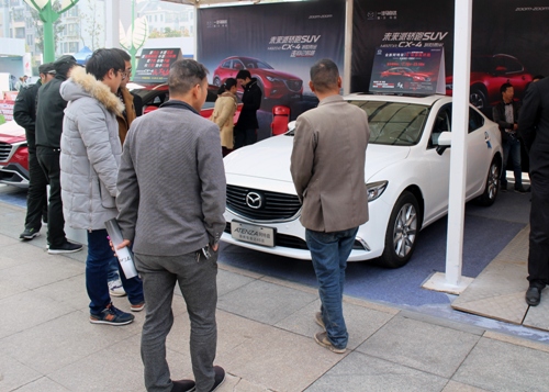 高邮消费者用各种姿势观赏一汽马自达新车型。