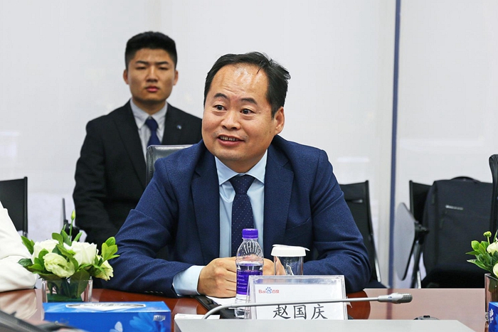 长城汽车高级副总裁赵国庆(右)与百度副总裁、智能驾驶事业群组总经理李震宇(左)代表长城汽车和百度签署合作协议