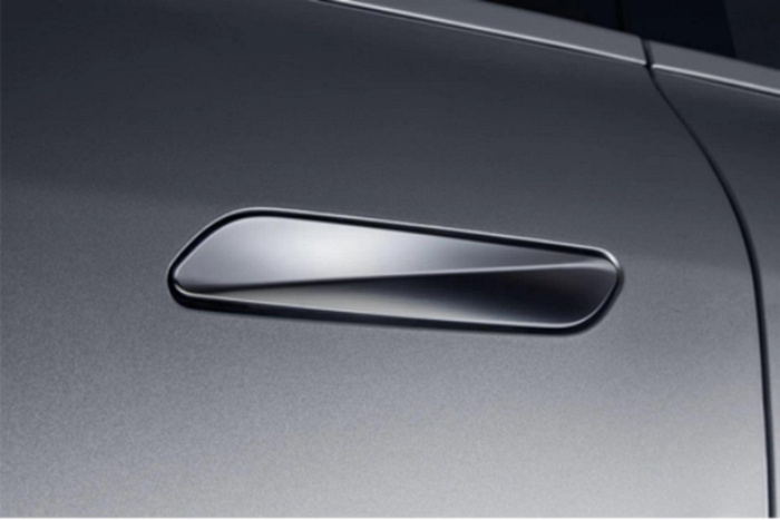 细节方面,吉利GE11的轮毂采用五幅旋叶式设计,宽幅轮毂呈半封闭状,可在高速行驶过程中降低风阻。车侧的隐藏式门把手也保持着与整车一致的科技感,同时也带来更好的空气动力学效果。