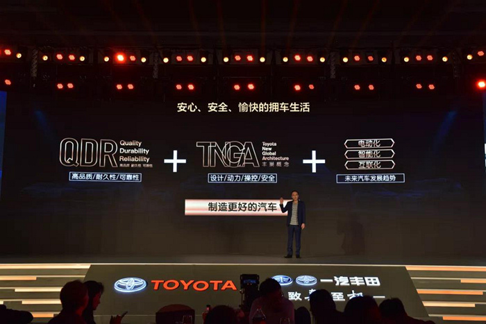 首先,持续提升品质。一汽丰田将在坚守以高品质、高耐久性、高可靠性为核心内容的QDR理念基础上,通过体系调整,将制造和销售一体化,不断为客户提供舒适的用车生活;同时,位于天津的一汽丰田全新TNGA工厂作为世界领先的高精度整车工厂,将令丰田品质实现永无止境的向上,从而让一汽丰田进入全新阶段。